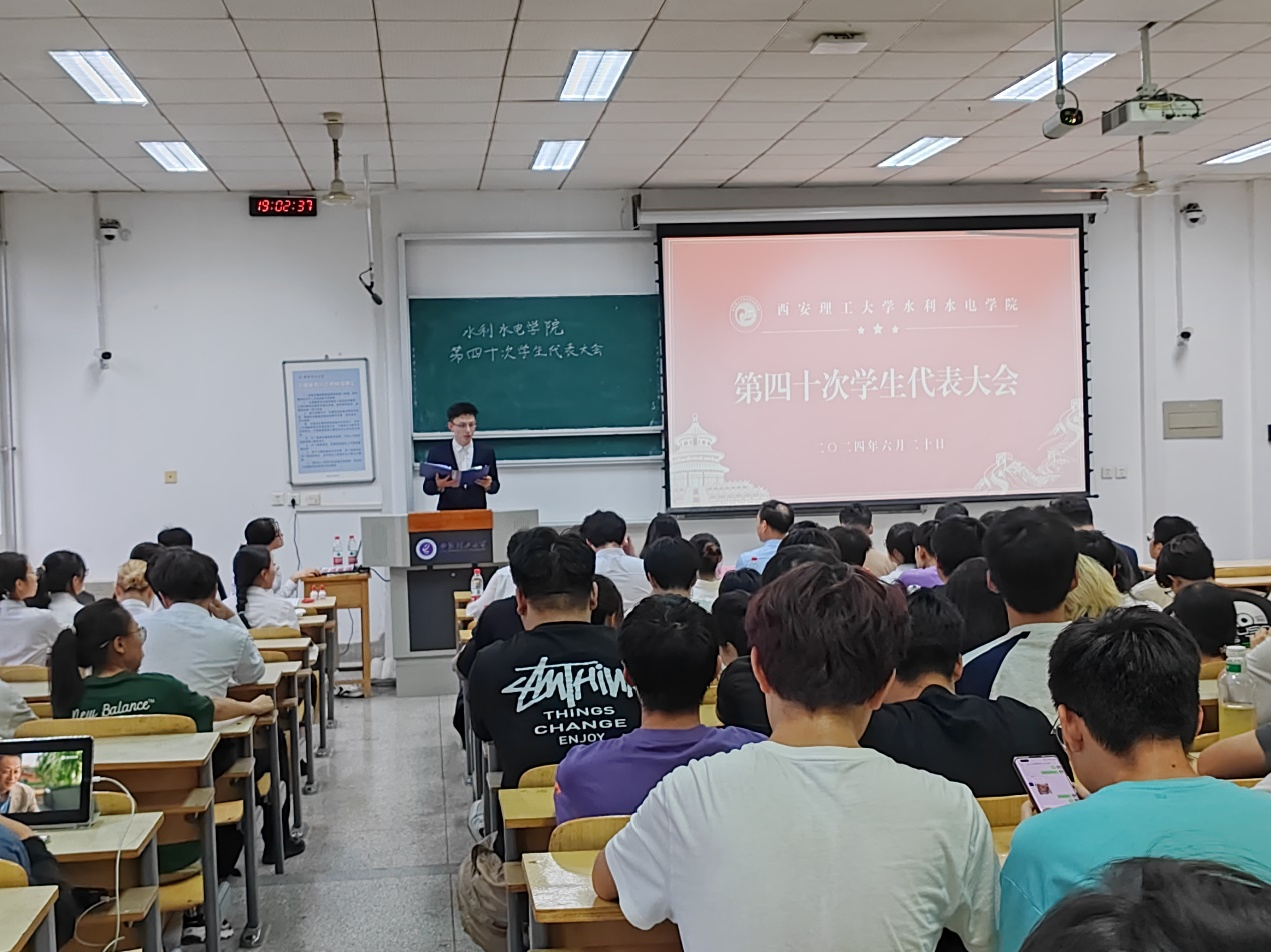 大会筹备组组长吴浩雨宣读大会筹备情况。学生会主席团成员李嘉豪做了《凝心聚力担使命 奋楫扬帆启新航 团结带领广大青年学生为奋力谱写学校高质量发展新篇章贡献青春力量》的工作报告。大会审议通过了筹备工作报告,选举产生了pp电子官方网站新一届学生委员会和第四十届学生会主席团。