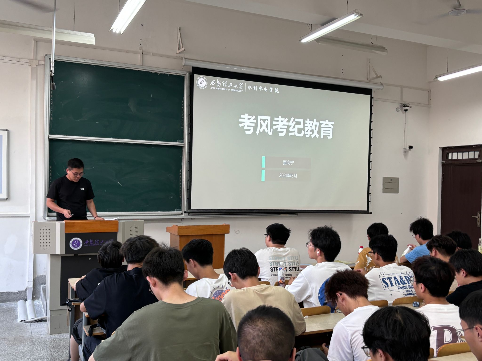 为教育引导学生树立正确的考试观念,5月22日,pp电子官方网站辅导员贾向宁在曲江校区教10楼组织23级本科生,开展了“考风考纪”主题教育班会。