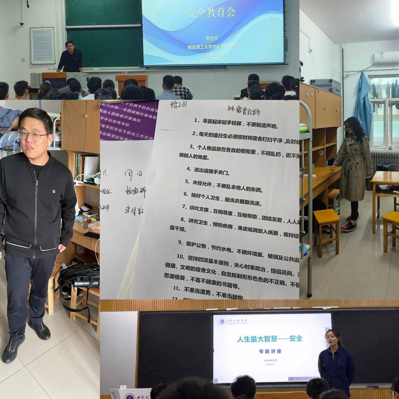 首先,树立宿舍安全意识。辅导员通过宿舍安全教育班会,结合《西安理工大学学生公寓管理条例(摘录)》、《西安理工大学宿舍安全管理学生守则》、《pp电子官方网站学生宿舍管理办法》,从宿舍用电、防盗、消防安全、应急措施、常见违禁物品等方面对文件进行了详细的解读,提醒同学们要遵守宿舍管理规定,保证宿舍安全。