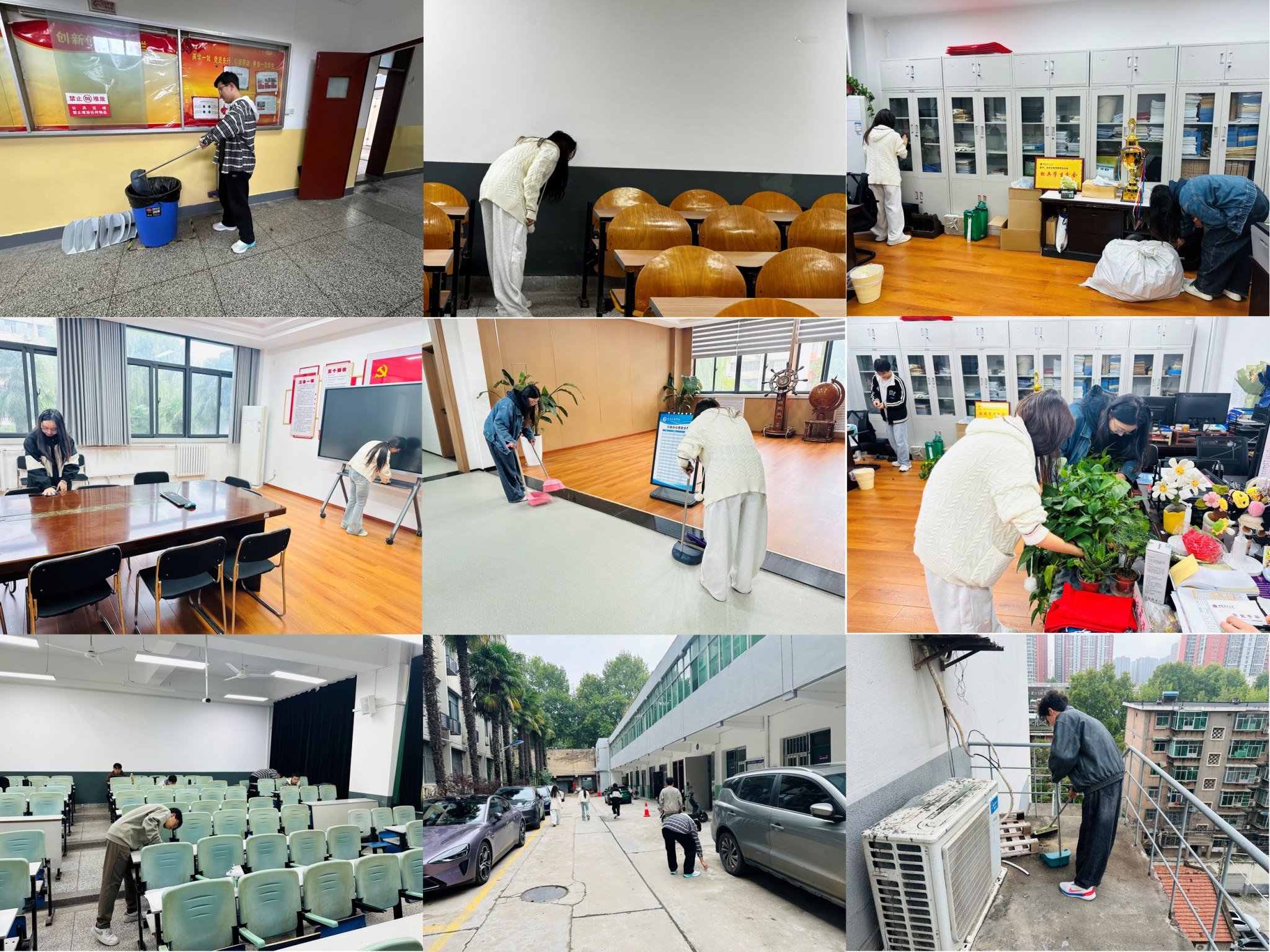 活动中,各班级同学踊跃参与,重点对教四楼、教六楼的教室、走廊、楼梯间等公共区域进行了全面清扫和整理。同学们分工明确、配合默契,发扬不怕脏、不怕累的劳动精神,认真清理卫生死角,规范整理物品摆放,不放过任何一个角落。经过大家的共同努力,整个教学楼区域环境焕然一新,营造出更加干净、整洁、舒适的学习和生活氛围。