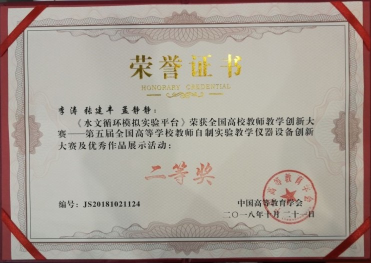 pp电子官方网站(水利水电国家级实验教学示范中心)积极响应,充分发挥在自制实验仪器设备方面的传统优势,选送的两个参赛项目获奖,取得优异成绩。其中,“水文循环模拟实验平台”(李涛、张建丰、孟静静)获得二等奖,“水文水资源虚拟仿真实验教学系统”(解建仓、罗军刚、魏娜、张晓、汪泥)获得三等奖。西安理工大学共有5个项目参加决赛,获得1个二等奖,4个三等奖,并获得团体奖,是参加该项赛事以来的最佳成绩。