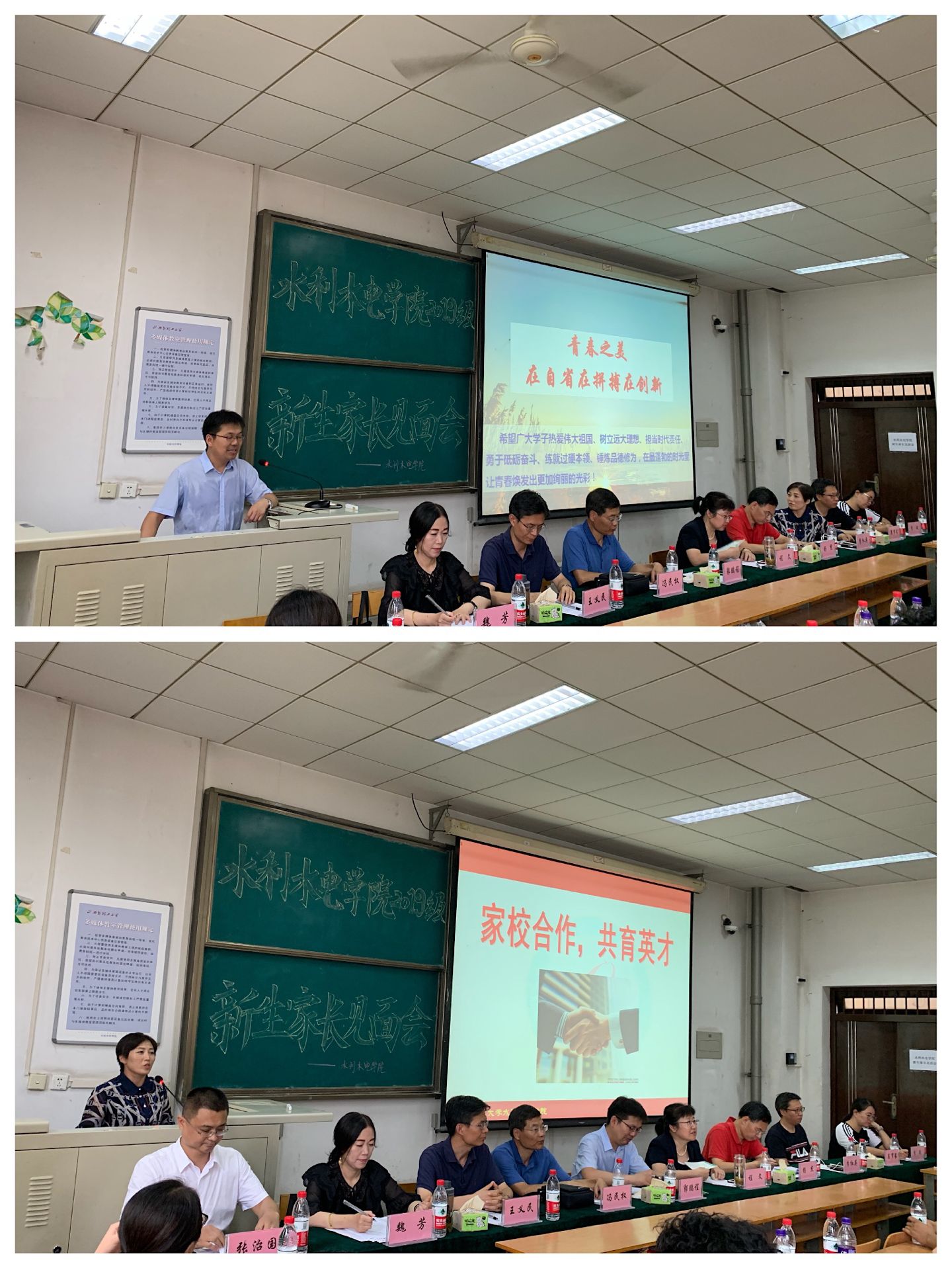 8月24日下午四点,pp电子官方网站2019级新生家长见面会在曲江校区教十楼202召开。院长郭鹏程,院党委书记程文,副院长杨杰,副院长冯民权,院党委副书记、副院长李红英,副院长王义民,院长助理、研究生科科长魏芳,院长助理吴罗长,院办主任李敏,2019级各班级导师、辅导员及200余名新生家长参加见面会。会议由院长助理、院学工办主任张治国主持。