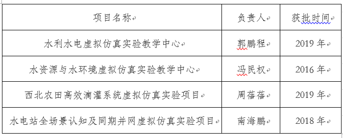 根据陕西省教育厅《关于公布2019年省级实验教学示范中心和虚拟仿真实验教学中心的通知》(陕教高办[2019]32号)、《关于公布2019年度陕西省虚拟仿真实验教学项目的通知》(陕教高办[2019]29号),pp电子官方网站郭鹏程申报的“水利水电虚拟仿真实验教学中心”,获批陕西省虚拟仿真实验教学中心;农业水利工程专业周蓓蓓申报的“西北农田高效滴灌系统虚拟仿真实验教学项目”,被认定为陕西省虚拟仿真实验教学项目。