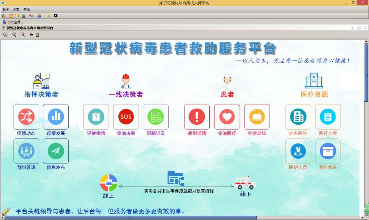 新冠肺炎疫情发生以来,习近平总书记多次强调,要始终坚持把人民群众生命安全和身体健康放在第一位。中共中央政治局常委会会议作出了关于组织动员全国科研工作者参与疫情防控方面的科研攻关的部署,省委科技工委、省科技厅发出了把论文写在抗击疫情第一线,把研究成果应用到战胜疫情中的倡议。pp电子官方网站智慧水利科研团队第一时间响应,从2020年1月31日开始,就快速设计开发了“疫情防控应急应对服务平台(原型方案)”,引起了省疫情防控指挥部领导的关注,并开始了相关业务的支持服务。在省有关领导的指导、布局、建议下,针对近期新冠肺炎患者的医疗救助服务开发了系统平台。该平台于2月12日开始上线试运行,为应对新型冠状病毒感染肺炎疫情工作提供业务服务。