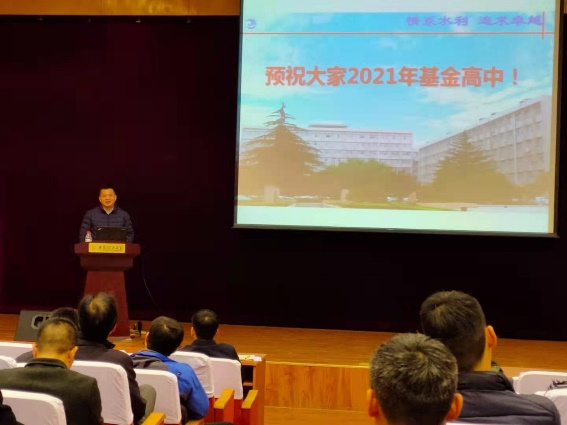 基金撰写阶段,学院与系所同时发力,针对青年、面上、重点等不同项目类别,分类推进指导,主抓项目的科学选题和撰写思路。学院邀请武汉大学李典庆教授为申报教师讲授国家自然科学基金撰写策略及技巧方面的专题报告。