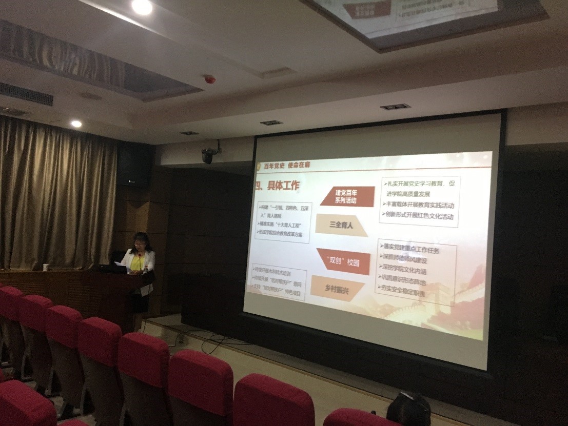 通过认真开展党史学习教育,开展庆祝建党100周年系列活动,切实引导引导广大师生真正做到学史明理、学史增信、学史崇德、学史力行,凝聚起奋进力量,为全方位推动学院高质量发展超越贡献力量。