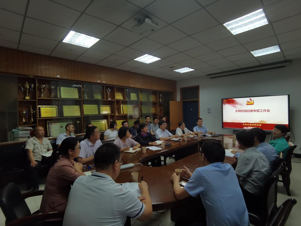 随后,会议就文明校园创建工作进行了部署讨论,进一步统一了共识、明确了目标,压实了责任。副院长、省部共建西北旱区生态水利国家重点实验室副主任吴罗长传达了学校文明校园创建工作专题会议精神,对文明校园创建指标体系进行了逐一说明,并就学院及重点实验室危化品处理、软硬件使用、整体环境等方面存在的问题进行了梳理。院党委副书记、副院长李红英通报了文明校园创建前期工作情况,并就下一步工作推进提出了具体要求。她指出,各支部要严格落实“三会一课”制度,对照标准,规范整理好支部各类记录材料;各系所除要做好教研室环境卫生外,还要主动带领系所导师协同辅导员共同发力,做好学生思想、课堂纪律及宿舍安全等教育管理,不断提升学院整体学生教育管理水平。