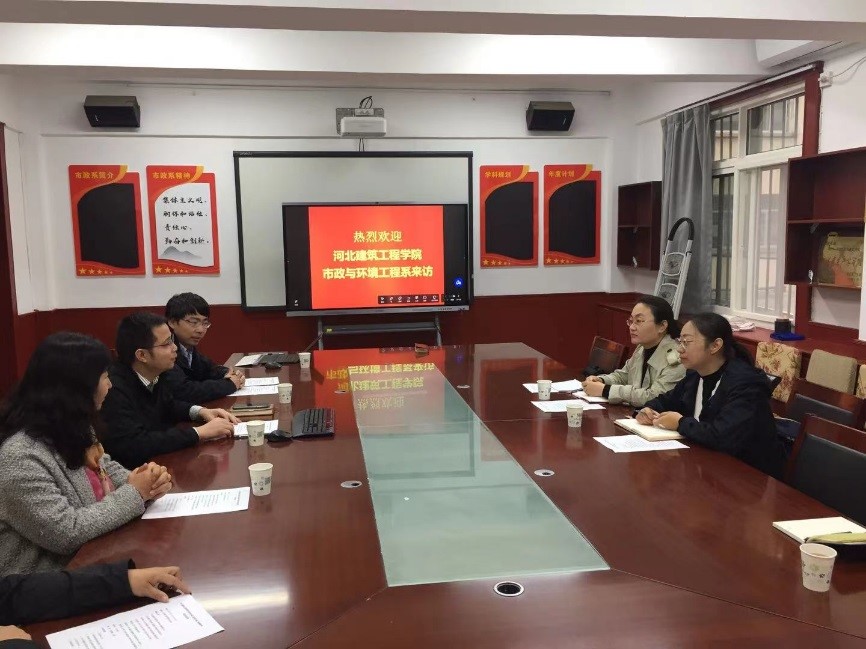 10月14日,河北建筑工程学院市政与环境工程系环境工程教研室主任李润玲和系教学办公室主任龚建英来访pp电子pp电子官方网站市政与环境工程系,就环境工程专业认证工作进行了调研交流。市政与环境工程系主任李家科教授、环境工程专业负责人刘玉玲教授及相关专业教师参加了座谈会。会议由系教学主任王东琦副教授主持。