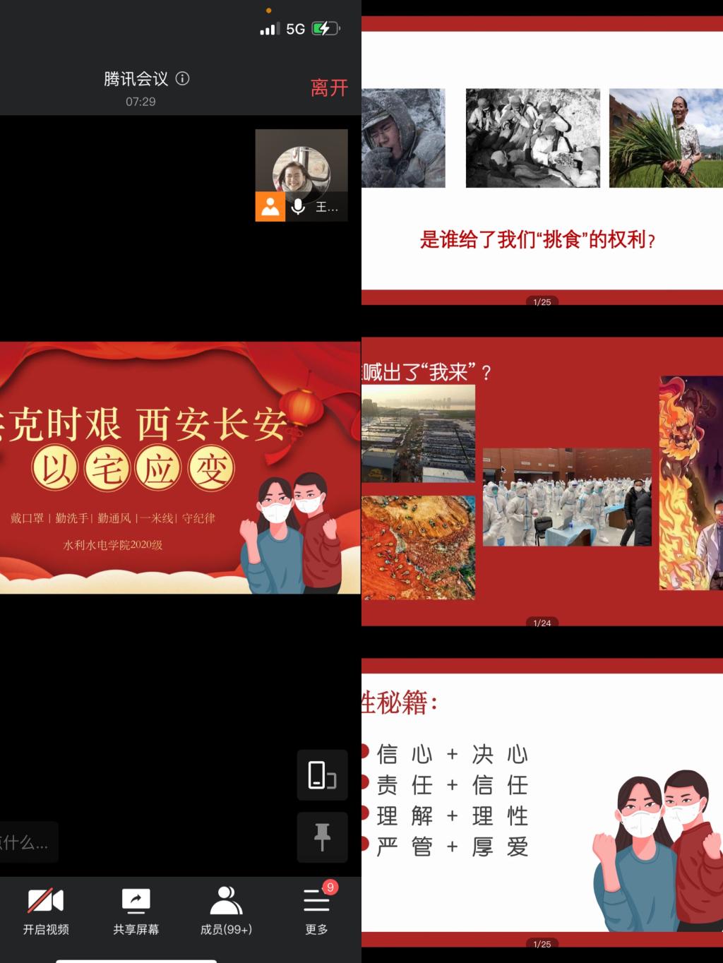 疫情就是命令,防控就是责任。为进一步夯实学生疫情防控教育工作,使学生在思想上认同、行动上践行“戮力同心 共克时艰”的观念。1月4日pp电子官方网站在腾讯会议上开展了“共克时艰 西安长安 以宅应变”主题教育活动,2020级全体本科生和辅导员参加了本次活动,活动由辅导员王竞婕主持。