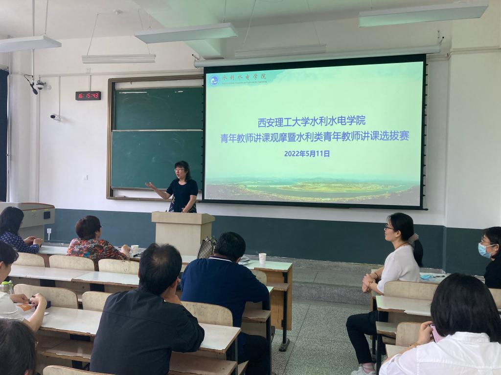 为进一步加强青年教师教学能力培养,夯实青年教师教学基本功,强化课程思政教学能力,促进课堂教学质量提升,增进系所学习交流,同时为参加“第八届水利类青年教师讲课竞赛”遴选优秀选手,学院于5月11日下午4点10分在教6-405,举办了“pp电子官方网站青年教师讲课观摩暨水利类青年教师讲课选拔赛”。水电学院党委书记程文、副院长周蓓蓓、校院督导袁继国、杨晓萍、院督导秦毅、院教学委员、青年教师及教学科人员参加了本次活动。比赛由周蓓蓓主持。程文出席并作讲话,高度肯定本科课堂教学技能提升的重要性,鼓励青年教师通过本次比赛进一步激发更新教育教学理念和掌握先进教学方法的热情,发挥好课堂教学课程思政、立德树人的主战场作用。