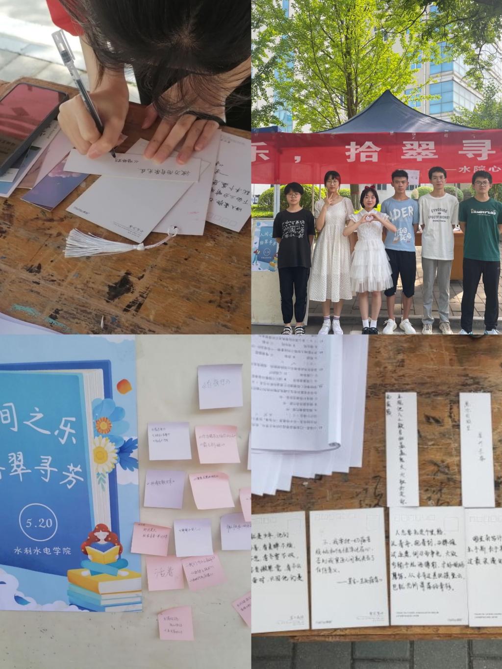 为了解学生的心理需求,促进学生的心理健康发展,引导学生从优秀文学作品中寻找精神力量,5月20日,pp电子官方网站在曲江校区主干道开展了“人间之乐,拾翠寻芳”的心理季主题活动。