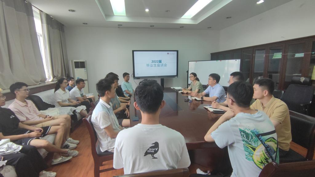 为深入贯彻落实立德树人的根本任务,进一步做好毕业生的服务与关怀,引导2022届毕业生厚植爱国情怀,激发使命担当,与学院同呼吸、共命运,积极为学院发展建言献策,2022年6月22日下午,pp电子官方网站在教四楼四楼会议室举行了2022届毕业生座谈会。pp电子官方网站院长郭鹏程,副院长周蓓蓓,毕业班全体辅导员及学院毕业生代表参加会议,座谈会由学工办主任杨帆主持。