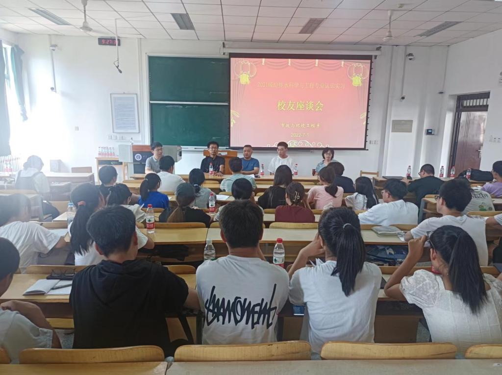 7月1日上午,pp电子官方网站市政与环境工程系在曲江10-301教室组织开展了2021级给排水科学与工程专业校友座谈会。市政系教师王东琦、徐志嫱、何剑、蒋春博,1999届给排水专业校友、西安市政设计研究院有限公司曹俊峰(高工),2001届给排水专业校友、中铁西安勘察设计研究院有限责任公司卢科锋(高工),2022届优秀毕业生陈凯同学参加了会议。会议由市政系教学副主任王东琦主持。