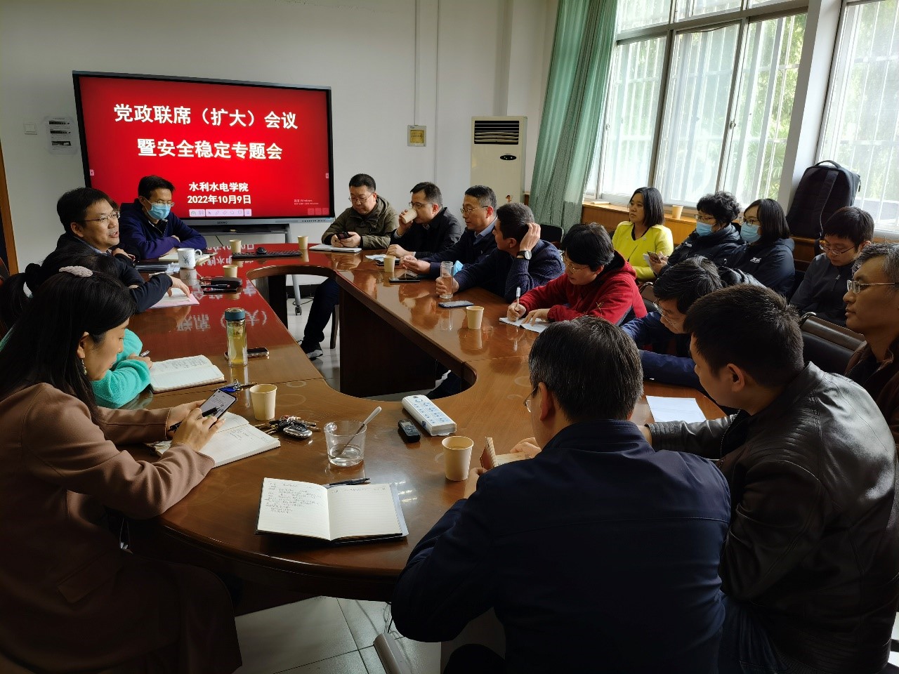 10月9日下午,pp电子官方网站在教四楼207会议室召开安全稳定专题会,对安全稳定工作及秋季学期其他各项工作进行安排部署,学院全体班子成员、系所/中心主任、教工党支部书记、各科室主任参加会议,会议由院长郭鹏程主持。