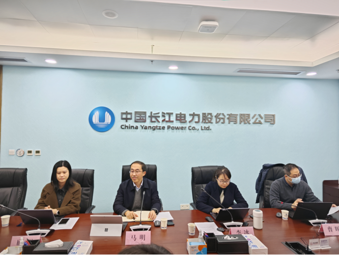 郭鹏程一行与长江电力公司科技创新部主任马明、业务主任李冰,人力资源部业务主任顾洋,科研中心水资源高效利用研究所副主任曹辉等7人就校企合作、实验室建设、“三峡班”人才联合培养与后期建设规划等方面进行座谈交流,座谈期间马明介绍了长江电力科技创新部的整体情况以及后期的主要研究方向,李冰就长江电力的科研中心、科技创新平台、科技创新成果与未来科研方向进行讲解,郭鹏程就学校、学院的发展历史、师资情况、科研发展、学科建设、专业设置和教育教学等方面进行介绍。深入交流阶段,双方就抽水蓄能电站研发建设、大坝坝体防渗、生态可持续发展、水轮机泥沙磨蚀等研究重点方向进行意见建议交流,并就春季招聘工作和人才联合培养交换意见、达成共识。