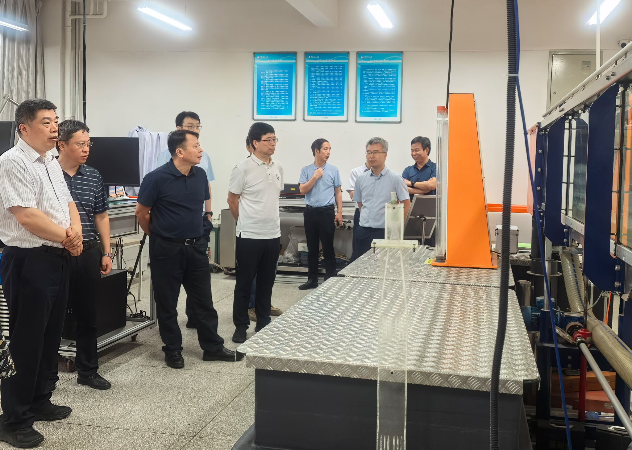 颜建国汇报了pp电子官方网站基本情况,与会人员围绕科技创新平台建设、国家级科研项目、科技成果转化、校企合作和联合创新模式等方面内容进行了深入交流。并在会后共同参观了水工大厅、水力学大厅等相关实验室。