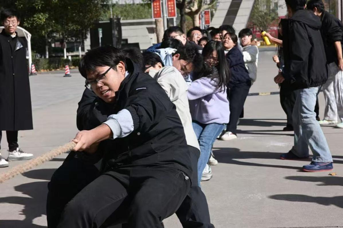 比赛过程中,学院拔河队表现沉稳、战术清晰。从小组赛到淘汰赛,队员们始终步调一致、发力均匀,以扎实的基本功和稳定的发挥逐步推进。决赛场上,面对实力强劲的对手,队员们腰背挺直、脚跟扎地,在响亮的号子声中凝聚整体力量。在绳标几度僵持、胜负难分的紧张时刻,全体队员咬紧牙关、绝不松懈,最终瞅准时机同时发力,一举锁定胜局。场边助威团情绪高昂,“水利水电 激情无限”的呐喊声响彻赛场,形成了场上场下双向奔赴的动人场景。