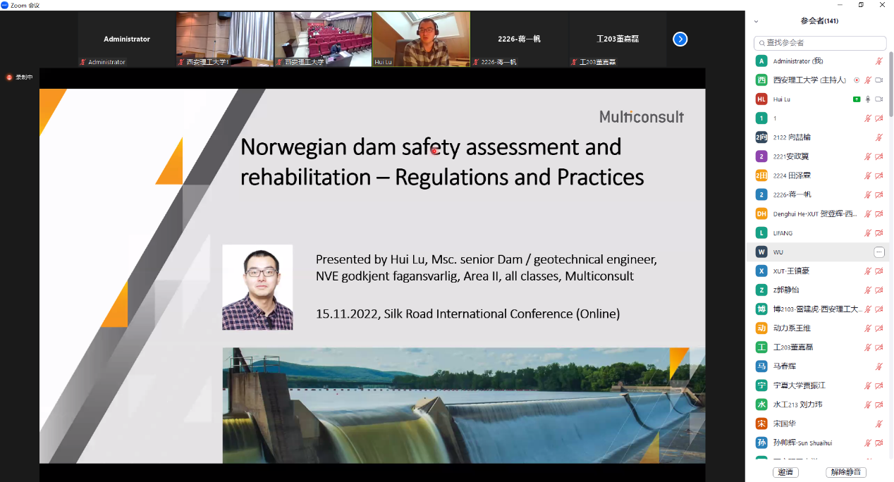 11月15日, 2022丝绸之路国际产学研用合作会议(2022 Silk Road International Conference on the Cooperation and Integration of Industry, Education Research and Application)智慧水利与低碳能源研讨会正式开幕,研讨会由陕西省教育厅主办,西安理工大学、宁夏大学、兰州理工大学和塔里木大学四家单位共同承办。西安理工大学副校长李占斌、宁夏大学副校长王忠静、塔里木大学水利与建筑工程学院院长王兴鹏、校国际合作与交流处处长亢文祥、副处长张志强、pp电子官方网站院长郭鹏程、副院长周蓓蓓等参加了研讨会开幕式并致辞。研讨会开幕式由周蓓蓓主持。
