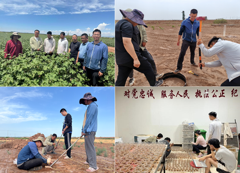 为促进产学研结合,提升研究生创新能力,推动科研成果转化,pp电子官方网站旱区绿色高效农业研究团队党支部利用暑期开展了“奔走在西部干旱地区,把农业技术带到田间地头”主题活动。支部部分成员与导学团队老师前往新疆维吾尔自治区阿克苏地区台兰河灌区,与当地工作人员、农户开展座谈交流、实地调查、样品采集处理等。